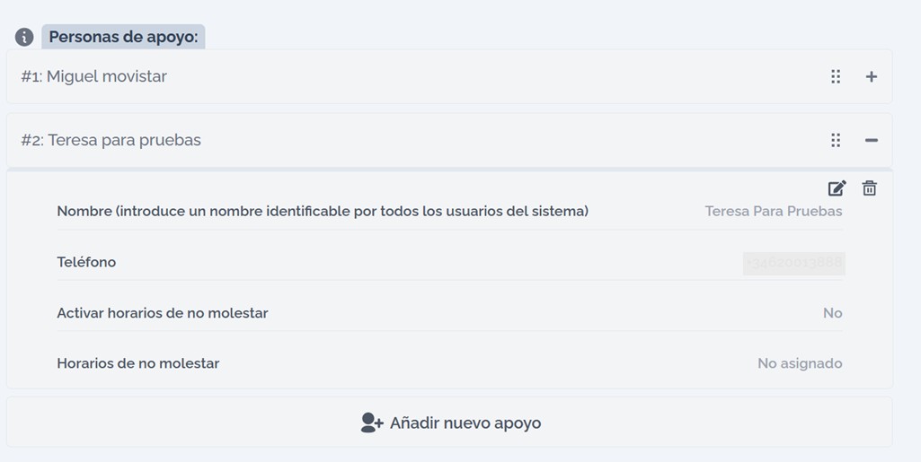 Serán aquellos invitados o empleados habituales en la casa que solo requieren armar y desarmar cuando salen o entran. No recibirán ninguna notificación de eventos producidos ni tendrán ningún derecho de gestión ni visualización de cámaras. Un invitado puede ser a la vez persona de apoyo y viceversa, lógicamente, para poder armar y desarmar y recibir notificaciones de eventos no atendidos por el administrador ni los usuarios principales. Los únicos campos a incluir son el nombre y su teléfono.