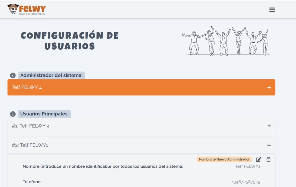 Generalmente, el resto de los miembros de la familia del administrador y que tendrán sus mismos derechos, salvo el de acceso al este dashboard de configuración. Al igual que para el administrador debes incluir un nombre reconocible por todos y su teléfono móvil. Son los dos únicos parámetros a incluir y poder modificar. El administrador siempre aparecerá el primero de esta lista y en el resto, también podrás nombrarles administrador. Cuando lo hagas y confirmes, se pedirá un correo electrónico para este y, desde ese momento, será el único con acceso al dashboard.